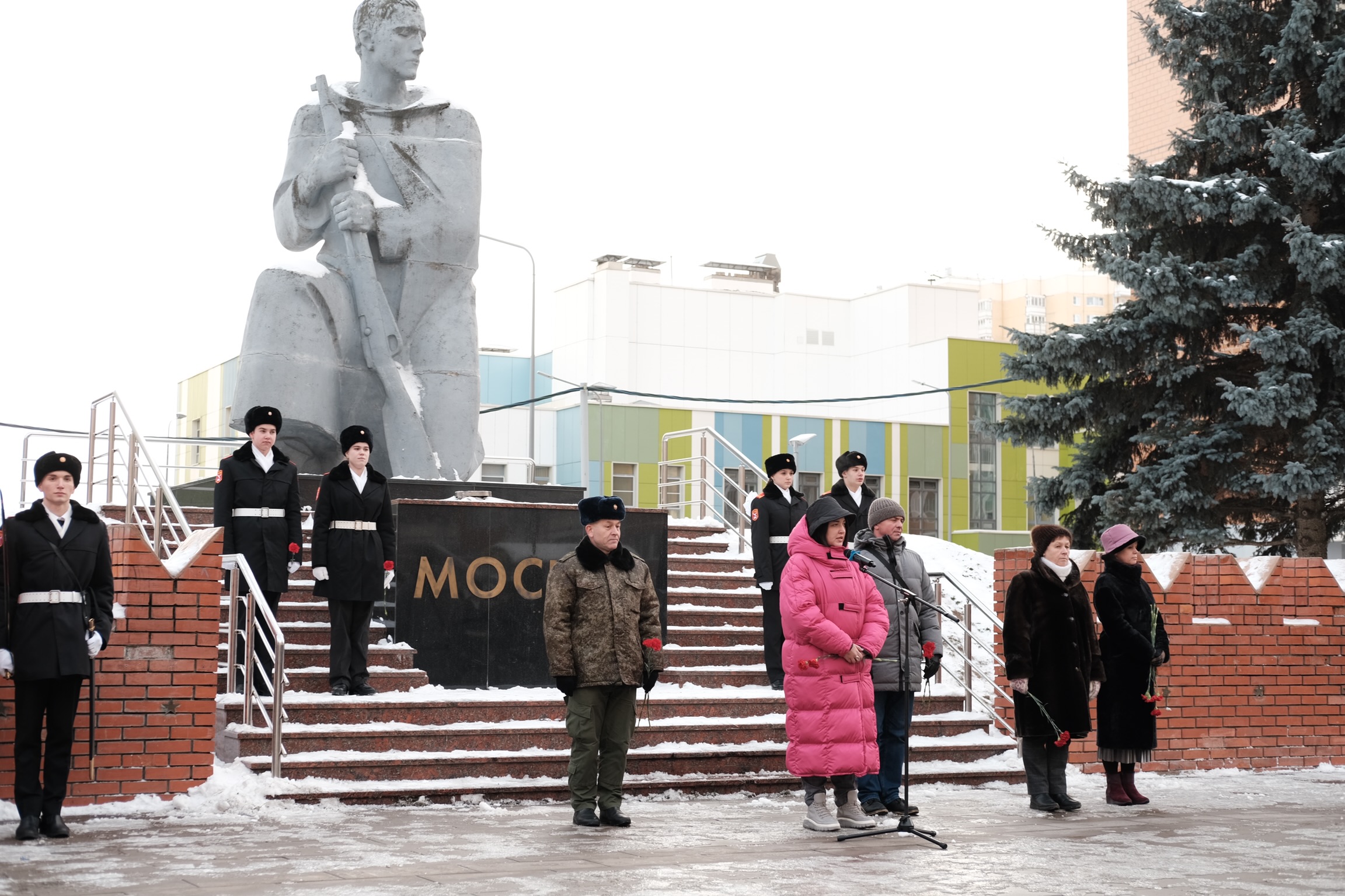 Сто учеников вместе с заместителями директора Борздых Екатериной Владимировной и Александровой Натальей Владимировной, соцпедагогом Кононенко Олесей Викторовной и воспитателями возложили цветы к памятнику «Защитникам Москвы», который находится рядом со школой.