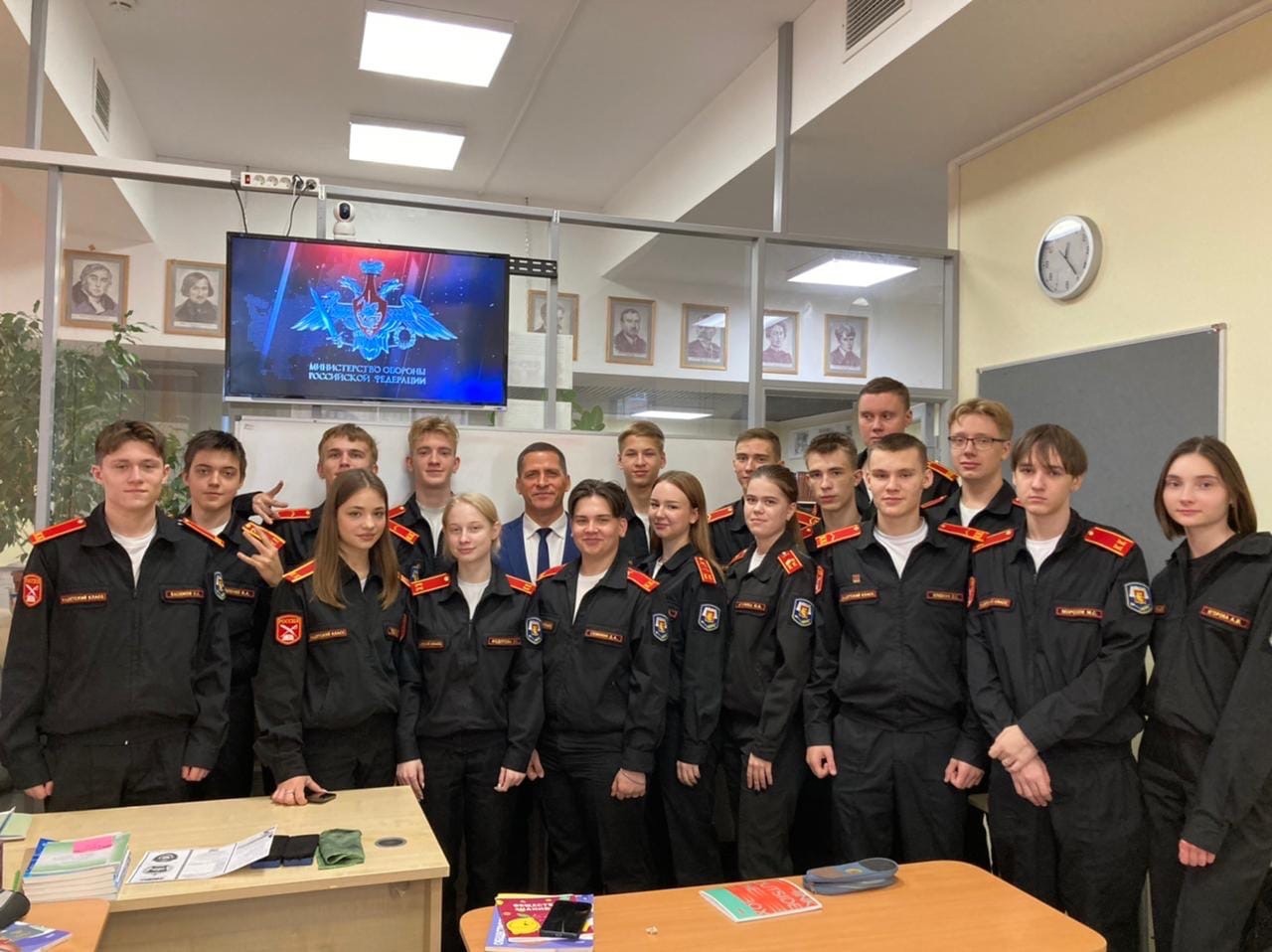 С подполковником юстиции в отставке Воробьёвым Андреем Алексеевичем, представителем Прокурорско-следственного факультета Военного университета имени Александра Невского встретились наши кадеты 11К класса.