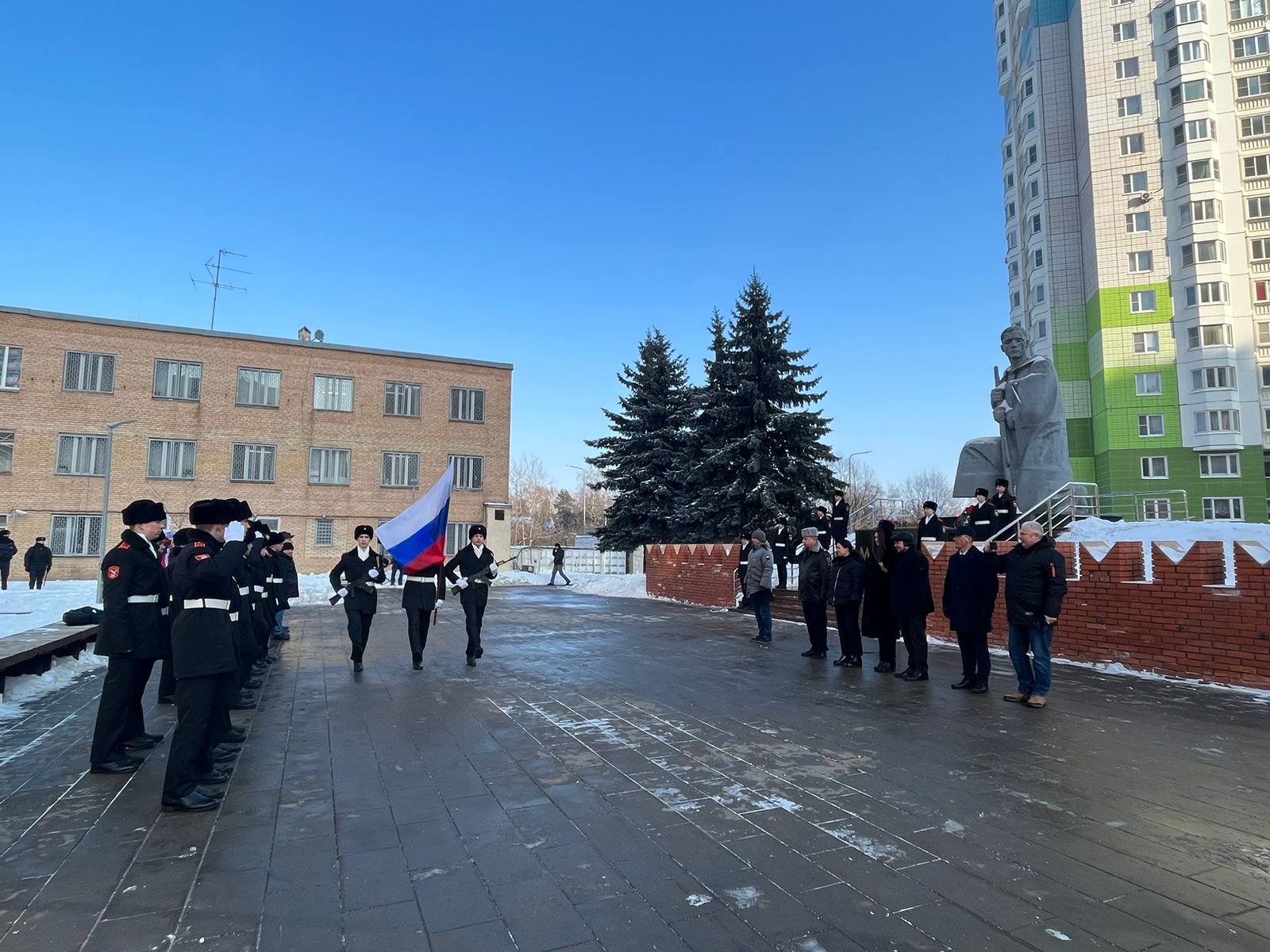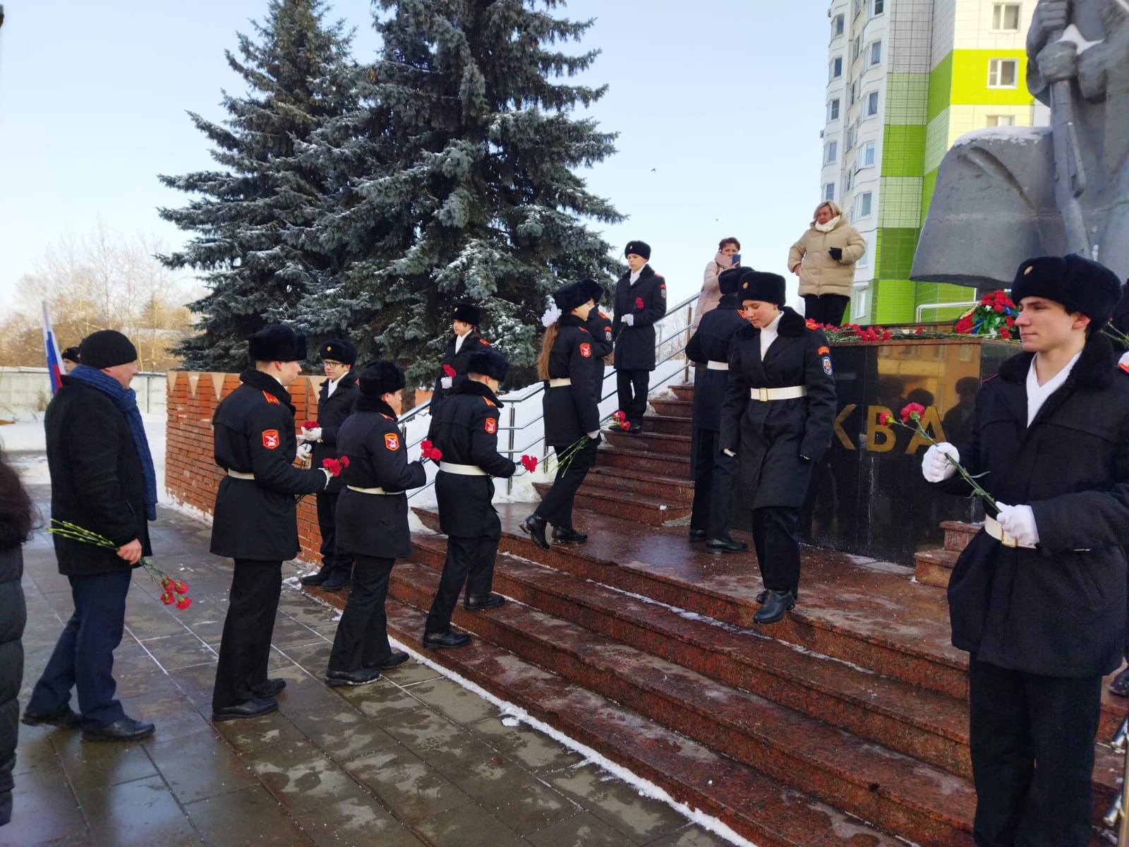 21 февраля около памятника "Защитникам Москвы" недалеко от нашей школы прошло праздничное мероприятие, посвящённое Дню защитника Отечества, и наши кадеты приняли в нём участие.