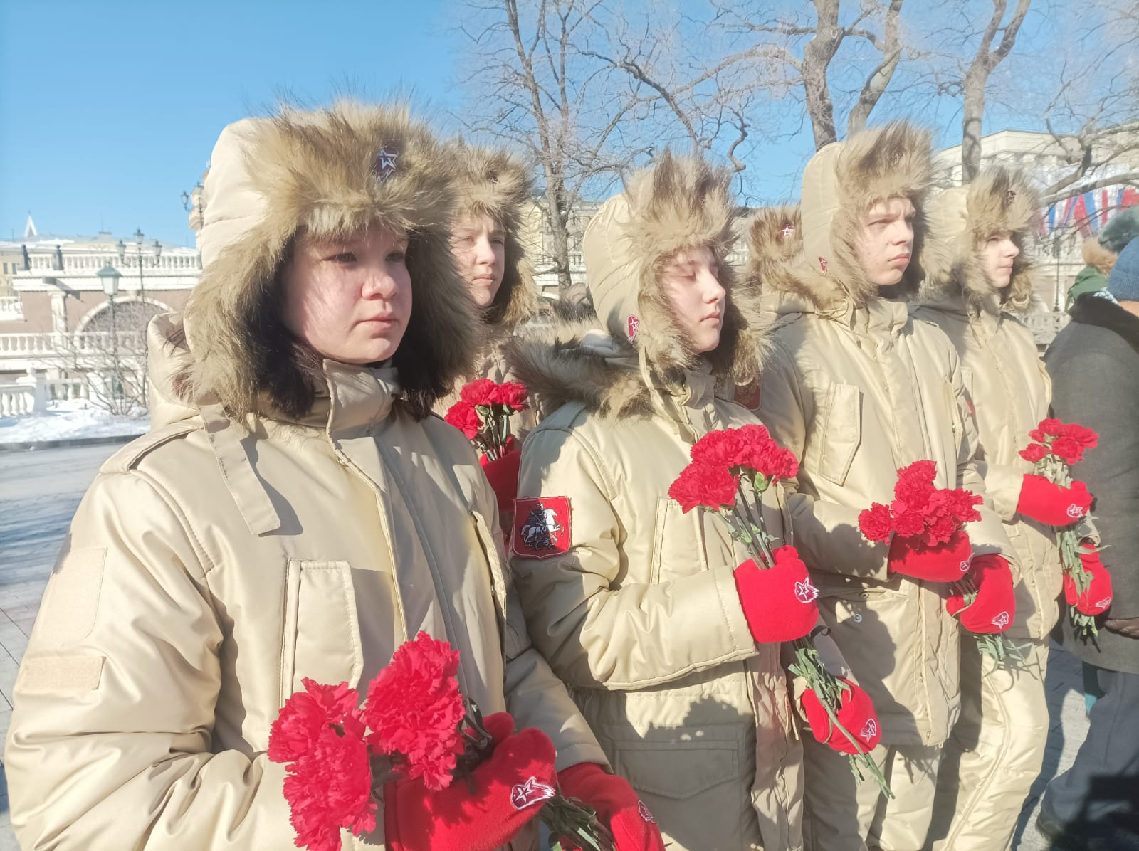 Наши юнармейцы из кадетского 8К класса 23 февраля приняли участие в возложении цветов к Могиле Неизвестного Солдата у Кремлёвской стены.