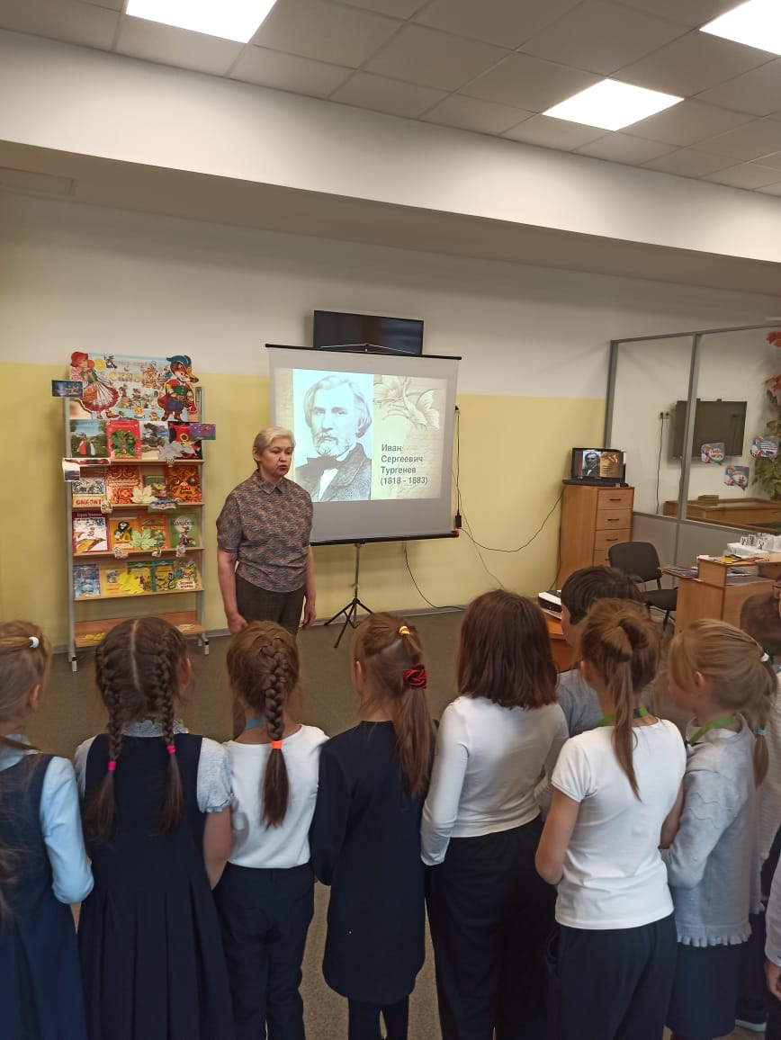 Первоклассники посетили выставку и вместе с библиотекарем Ириной Николаевной Волковой прочитали стихи Тургенева о птицах, а ребята из 2-4 классов познакомились с биографией литератора и обсудили поучительные сказки, воспитывающие человеколюбие, честность, рассудительность.