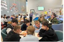 Чтобы поздравить ребят и их классного руководителя Светлану Анатольевну Басаримову с таким блестящим успехом, к нам в школу прибыл представитель Движения Первых Никита Меркулов.