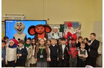 Дедушка Мороз, красавица Снегурочка, забавный снежный Олаф, весёлые зайчики со знаменитым Чебурашкой поздравили учеников 1, 2 и 3 классов с наступающим Новым годом и долгожданными зимними каникулами.